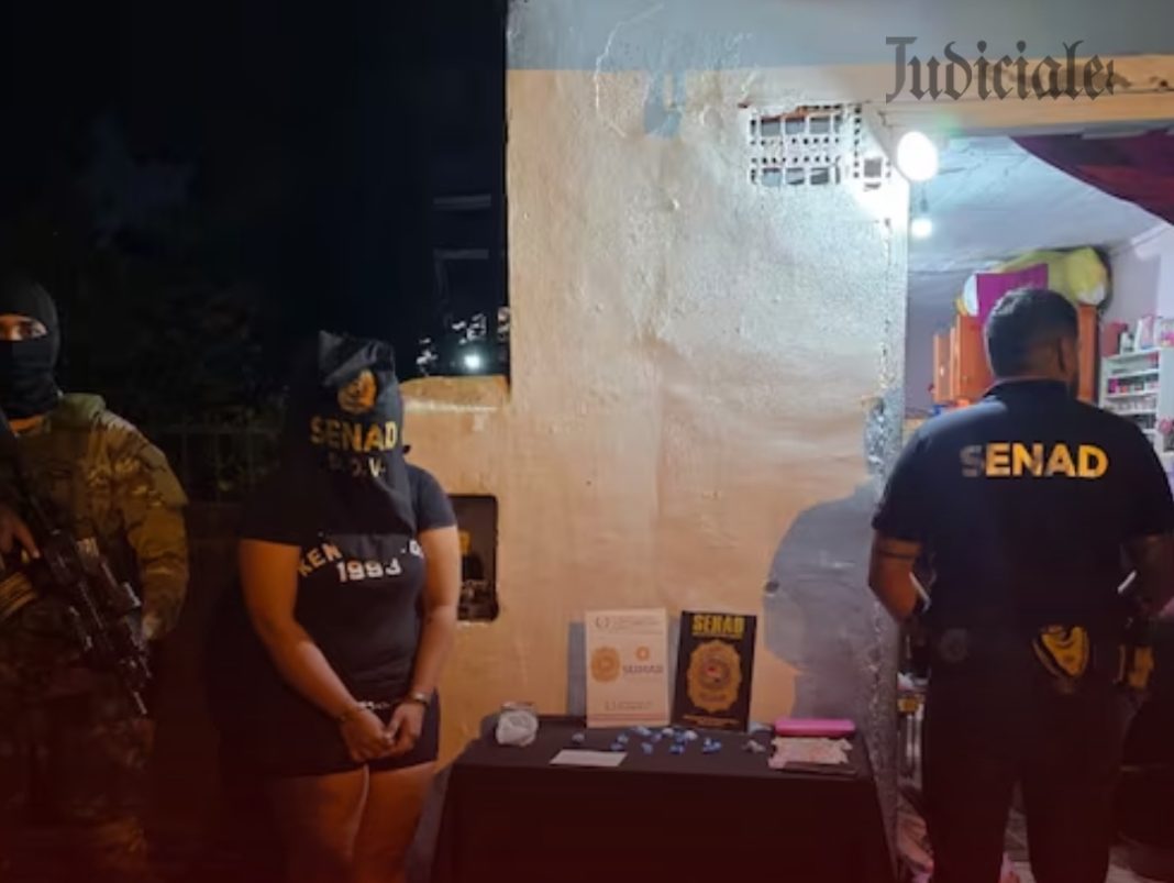 Una joven fue detenida durante el operativo de la Senad, que incautó cocaína, marihuana, dinero en efectivo y un celular vinculado a la actividad ilícita.