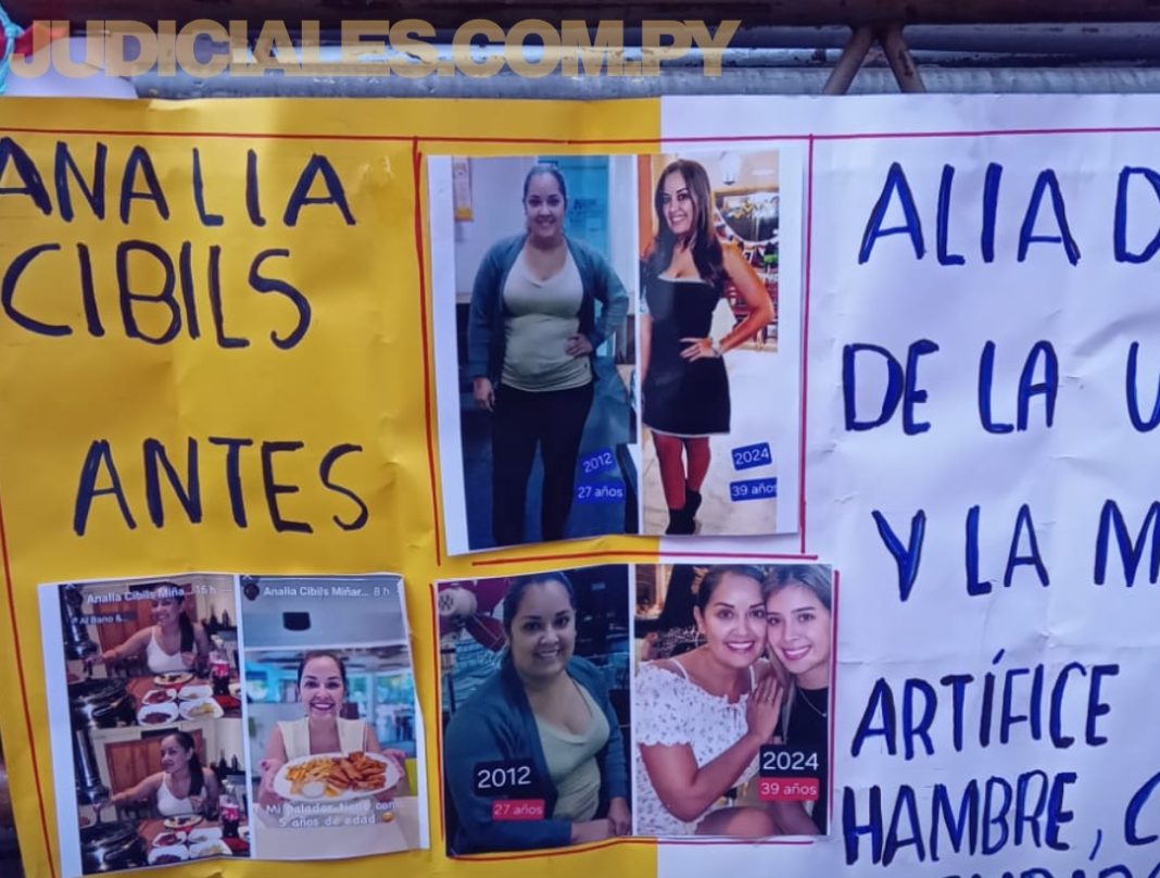 Durante una manifestación de presuntas víctimas del esquema conocido como la “mafia de pagarés”, realizada frente al Jurado de Enjuiciamiento de Magistrados (JEM), se expusieron imágenes comparativas sobre la evolución patrimonial y personal de la jueza de paz suspendida Analía Cibils.